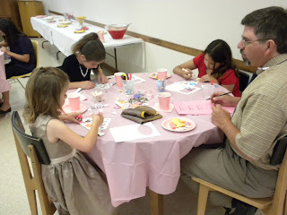 And the Daddies! The one who just got in from Okinawa last night, but who made sure he got his girls to the tea party. The Grandpa who not only brought his granddaughter, but let her plaster stickers on his face. The Daddy who, when another Daddy couldn't make it at the last minute, added an extra princess to his family for the afternoon (a little girl he had never met!) He is our hero for the week!